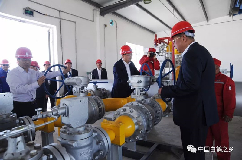 副市长张天华,县委书记鲍长山,吉林油田分公司天然气处处长韩永庆共同启动了供气阀门。