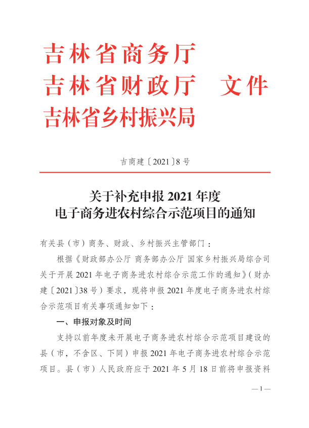 关于补充申报2021年度电子商务进农村综合示范项目的通知